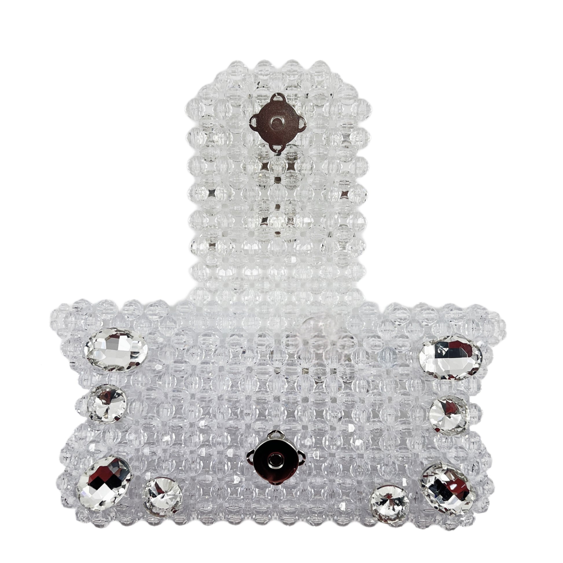 Chiara Purse is the most glamorous of the Bad At Math Family! Handmade with 8mm Faceted Acrylic Beads. She has a Magnetic Closure and her Size can fit your Phone, Cards and Gloss! It comes with a detachable little bag handle that can transform your Chiara in a Luxurious Clutch