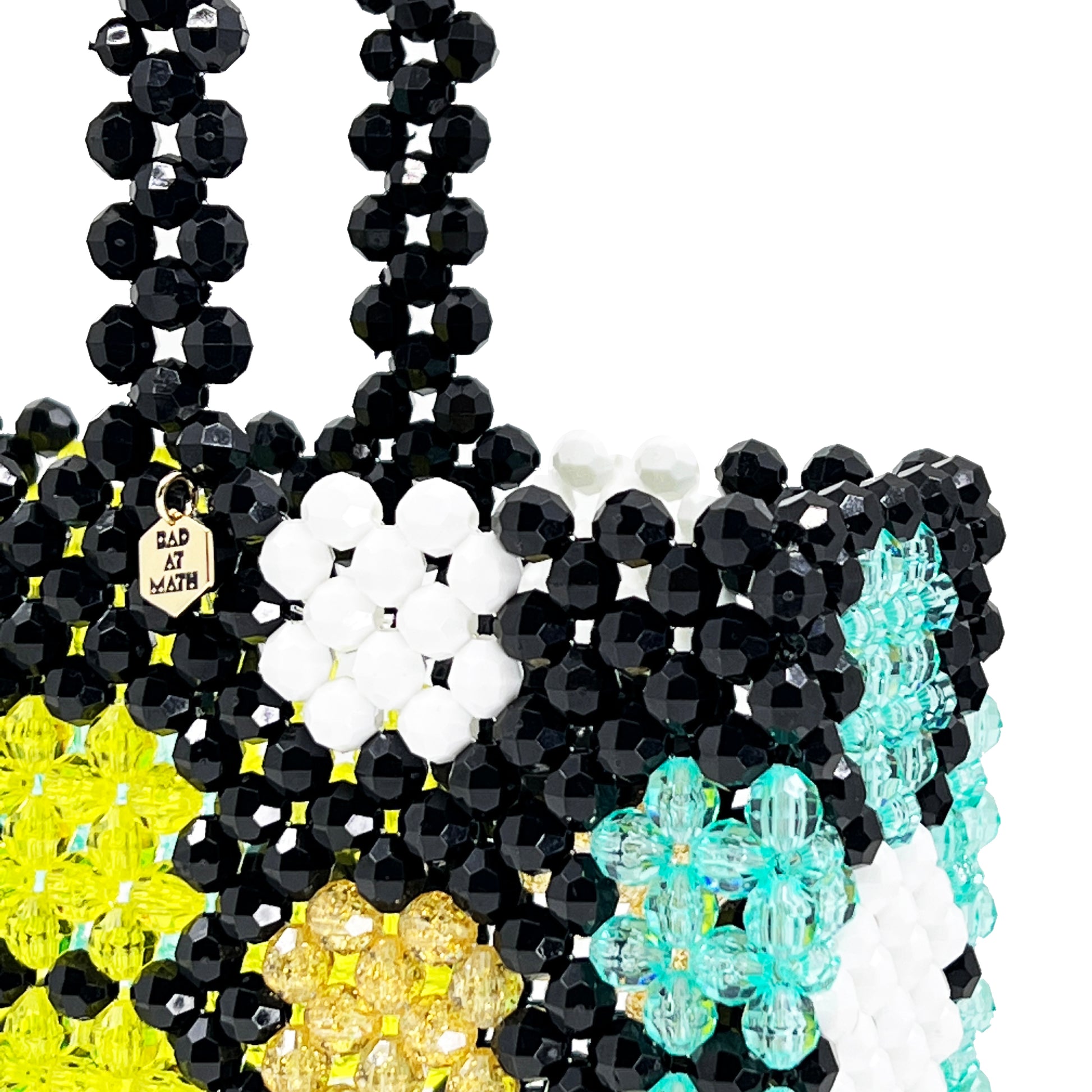 - Base Nera con Fiori Color Bianco, Tiffany, Giallo e Dettagli Oro