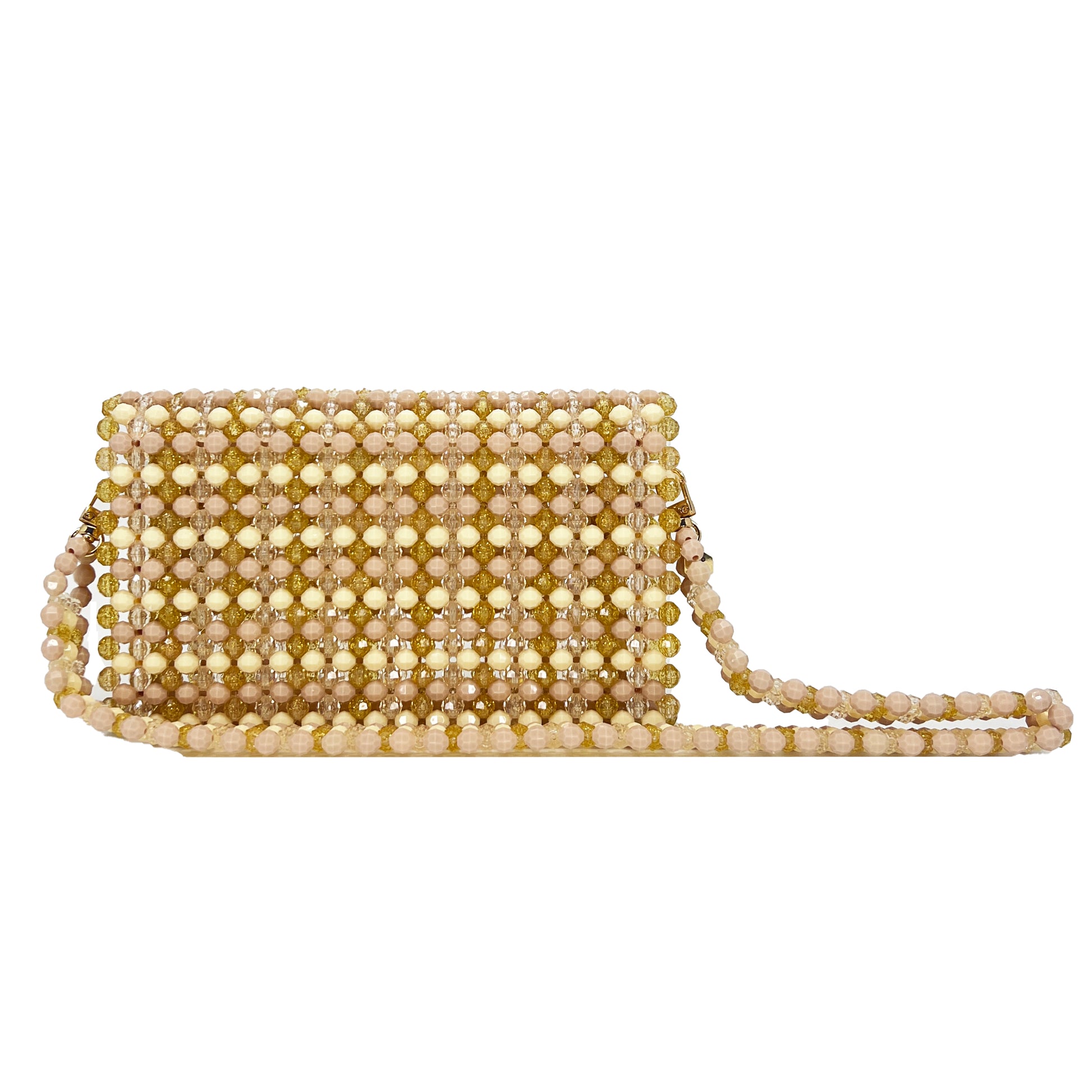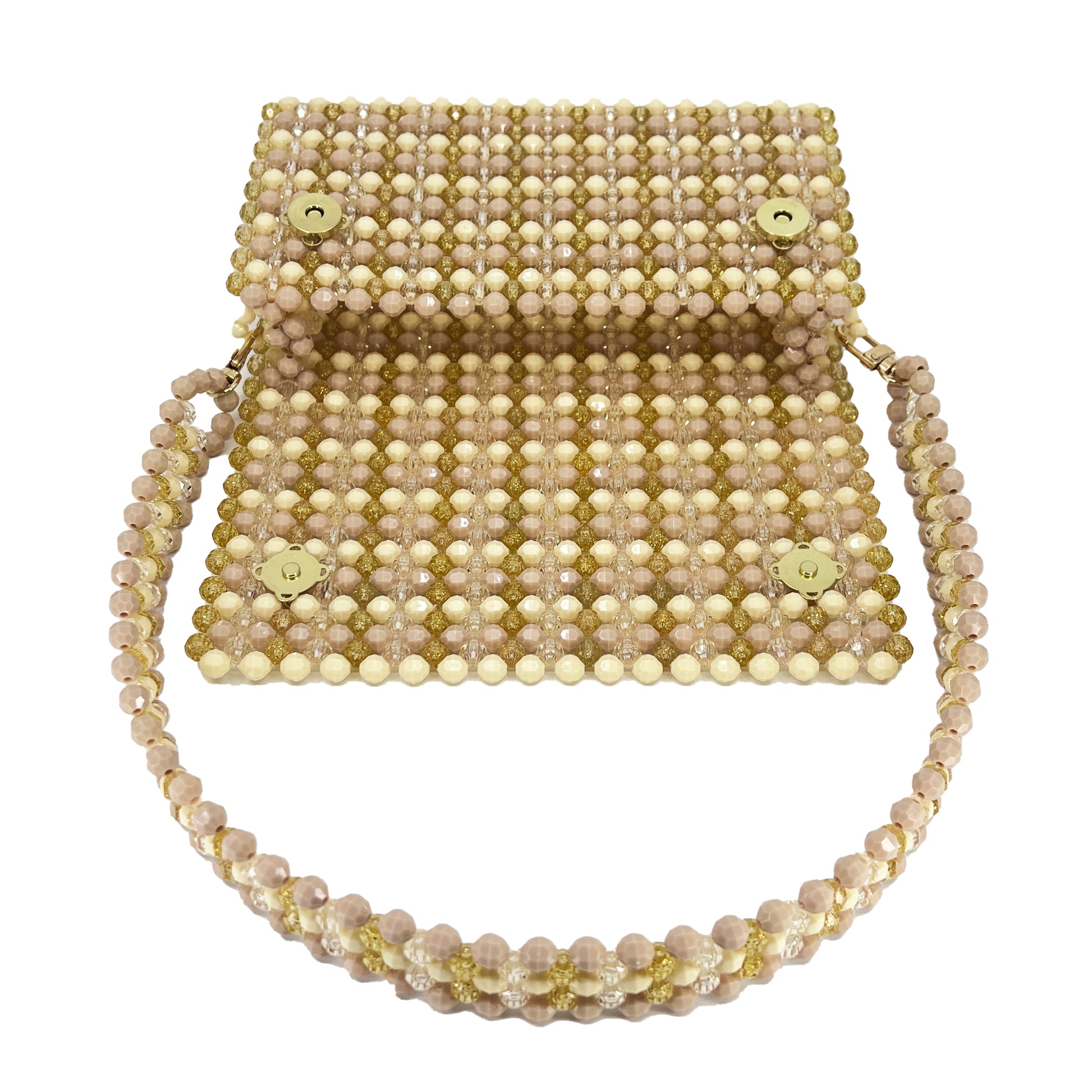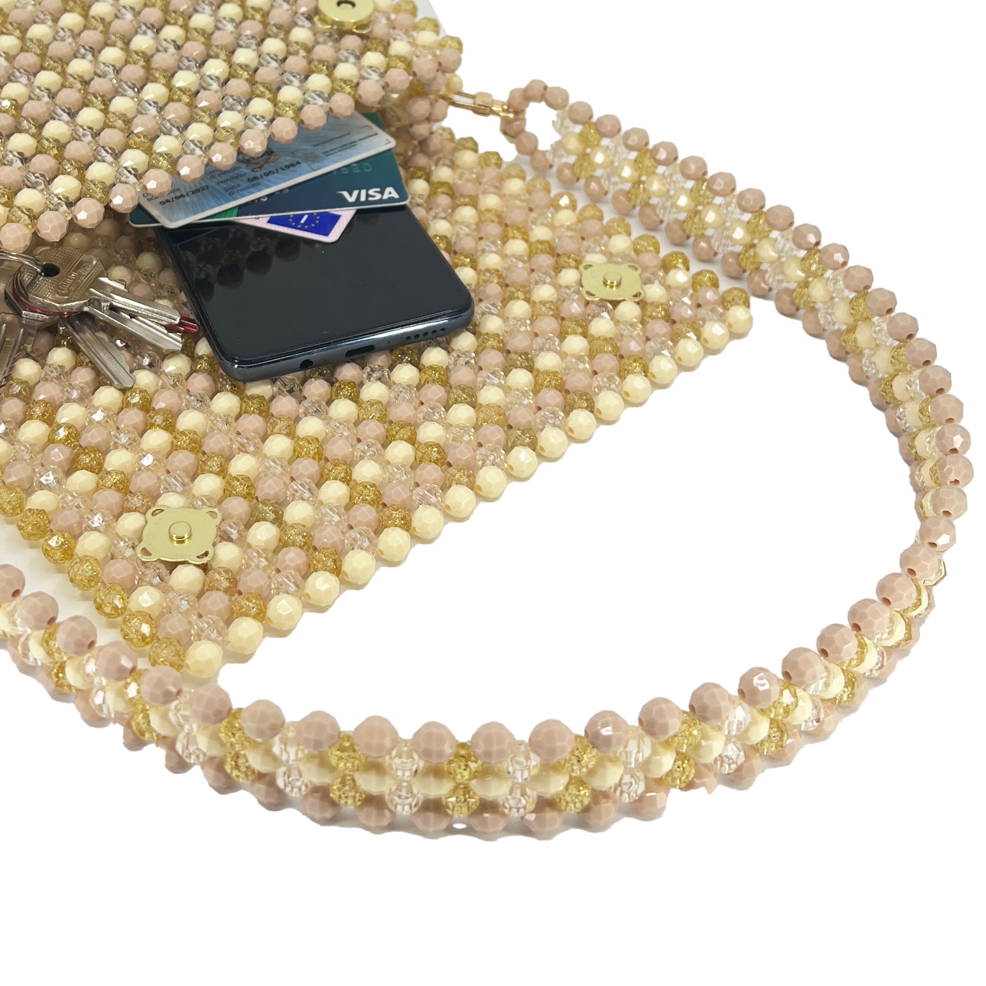 Introducing THE GALA BAG, a handcrafted acrylic beaded bag with 8mm diamond-cut beads. Perfectly sized for your phone and essentials, day or night. The 63cm shoulder strap is detachable, transforming it into a stylish clutch. Two magnetic closures provide convenient and secure storage.