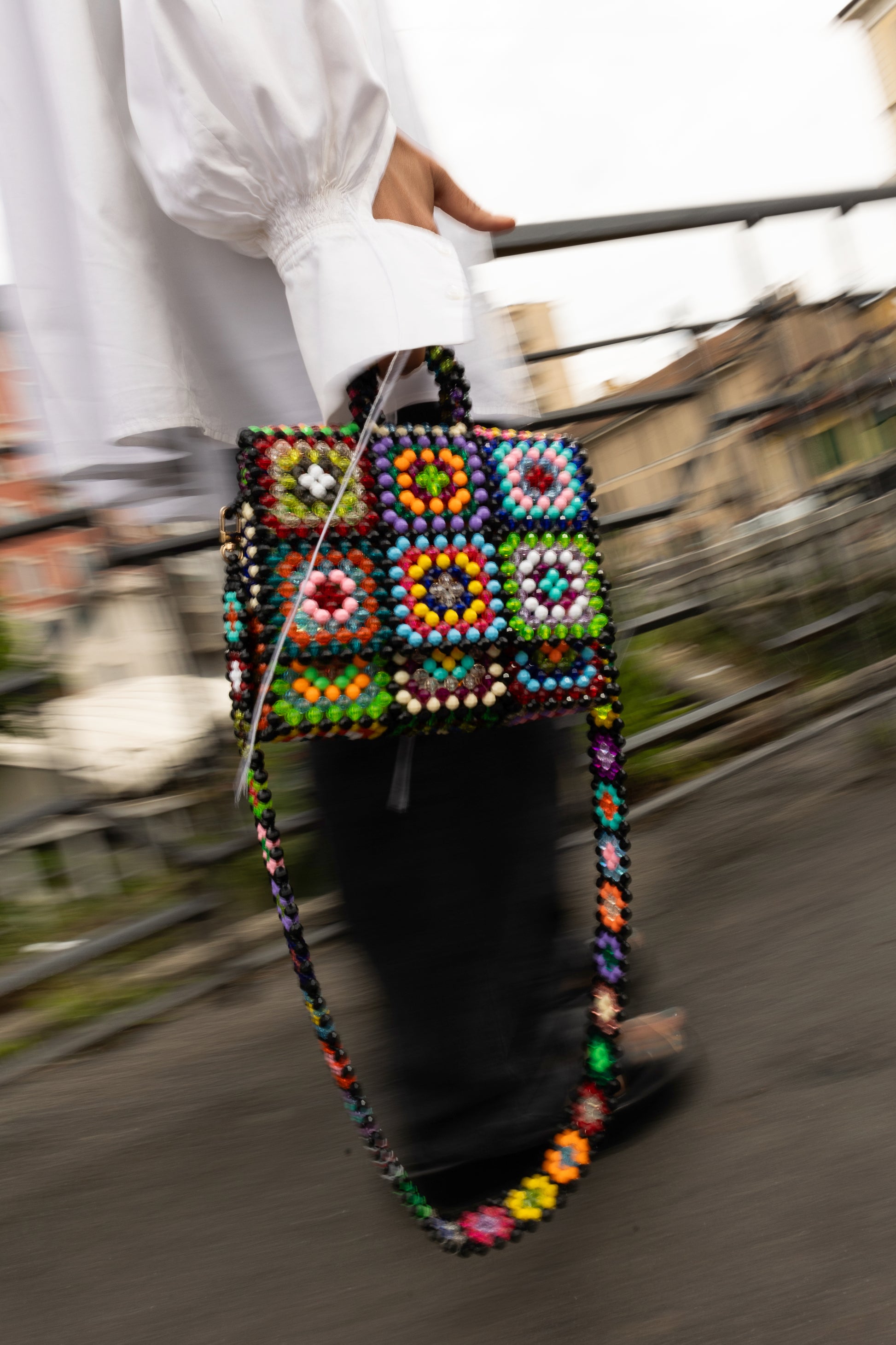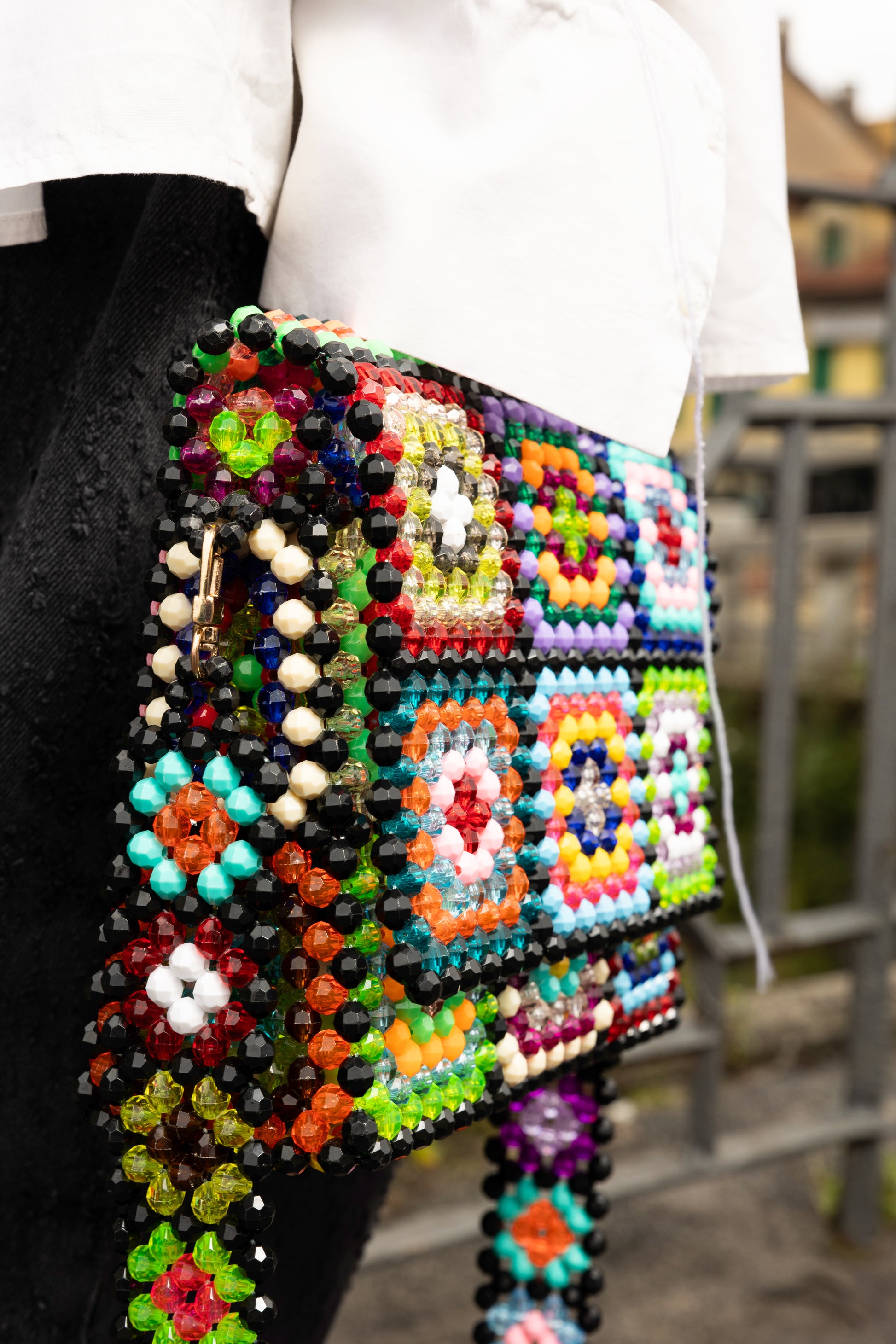 This iconic and top-selling model is handcrafted with high-quality acrylic beading and sturdy construction, making it perfect for any occasion. The detachable shoulder strap adds versatility, allowing you to wear it as a shoulder bag, crossbody, or even a chic clutch. Keep all your essentials secure with two magnetic closures. With a spacious interior, this bag can hold more than you can imagine.